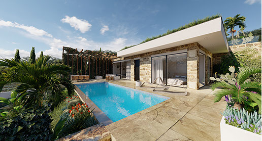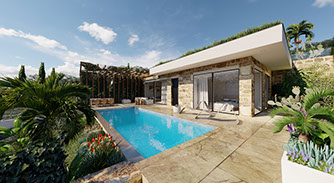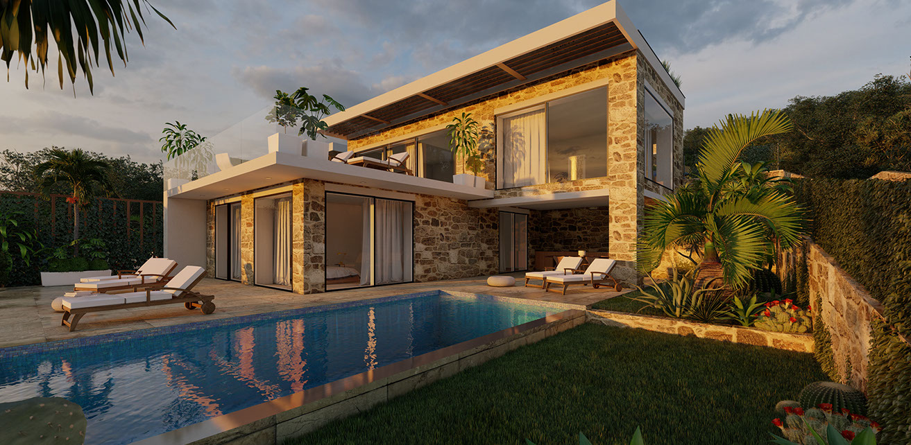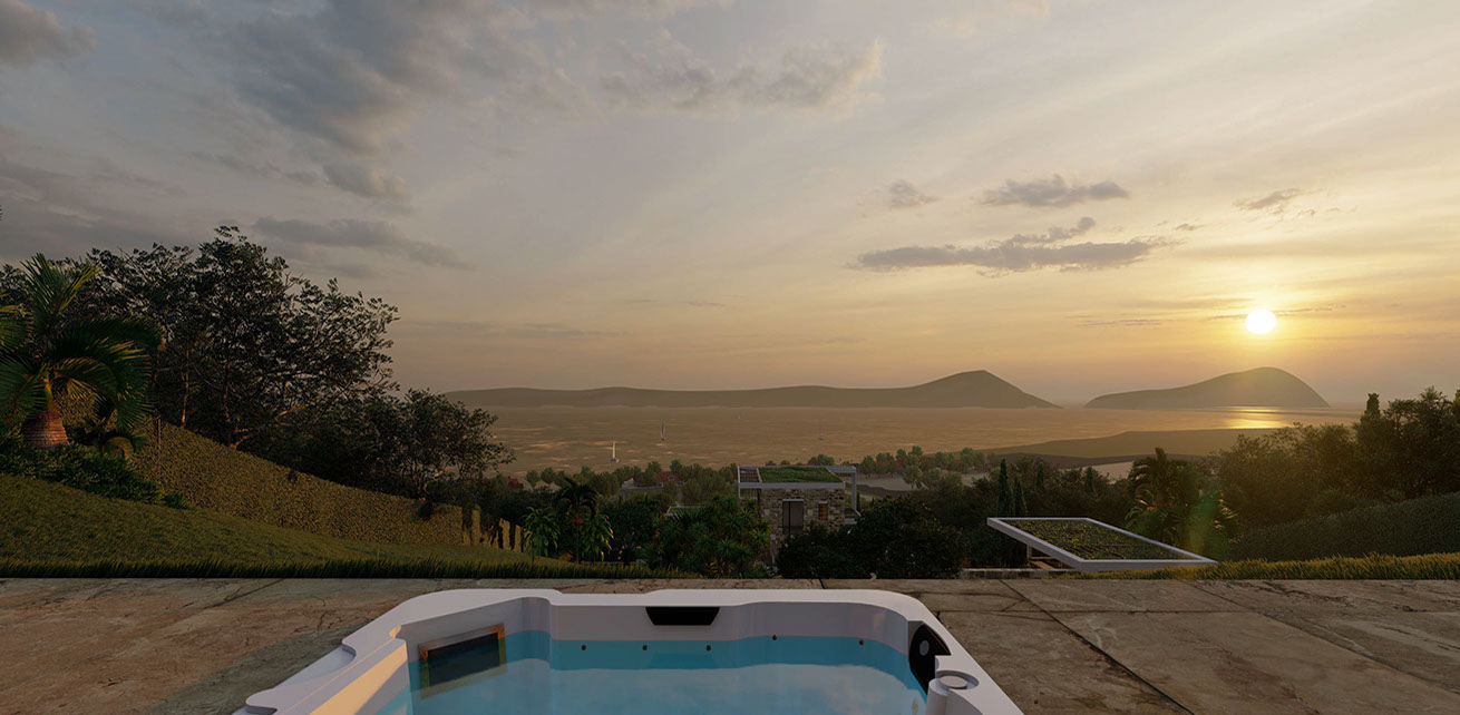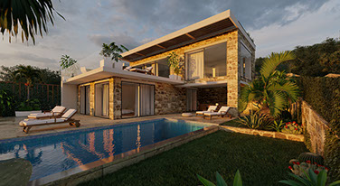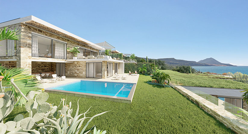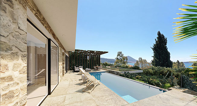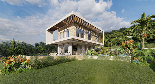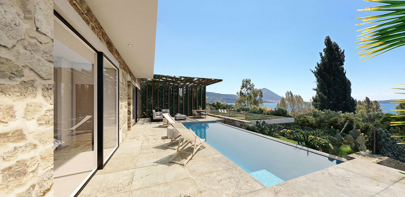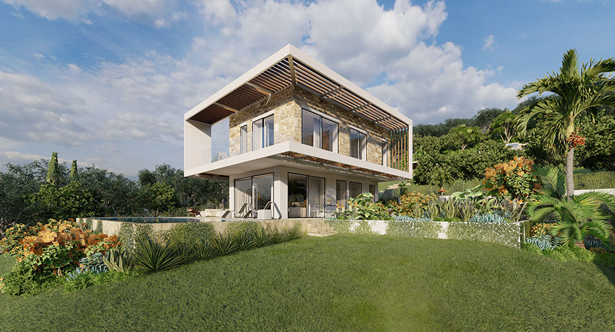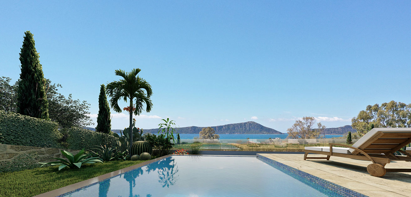 Πωλούνται συνολικά έξι αρχιτεκτονικά σχεδιασμένες βίλες με επιφάνεια κατοικίας 120 - 184m ². Κάθε σπίτι διαθέτ ει υπέροχους εξωτερικούς χώρους (εξωτερική σάουνα με χώρο μασάζ, τζακούζι, υπαίθριο μπαρ, βυθισμένο καθιστικό με τζάκι), συμπεριλαμβανομένης ιδιωτικής πισίνας, θέσεις στάθμευσης και εκπληκτική θέα στον κόλπο.