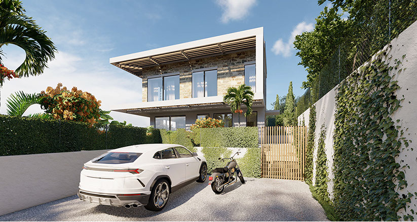 Κάθε βίλα έχει θέσεις στάθμευσης ακριβώς μπροστά από την μπροστινή πόρτα