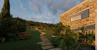 Οι εξωτερικοί τοίχοι οι οποίοι αποτελούνται από φυσικές πέτρες, τοποθετούνται μαζί σε έναν άγριο συνειρμό για να δημιουργήσουν μια τυπικά ελληνική, αλλά μοντέρνα εμφάνιση. Τα πανοραμικά παράθυρα τονίζουν επίσης τη μεσογειακή αίσθηση. Όλα τα σπίτια είναι εφοδιασμένα με πλακάκια δαπέδου μεγάλου σχήματος ή με επίστρωση δαπέδου. Αυτό δίνει στους εσωτερικούς χώρους μια μοντέρνα και καθαρή εμφάνιση.