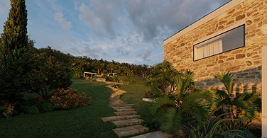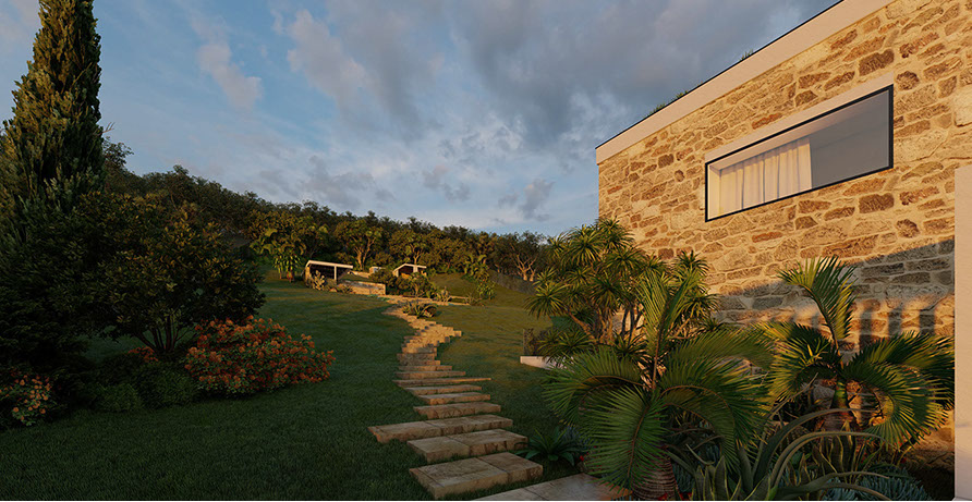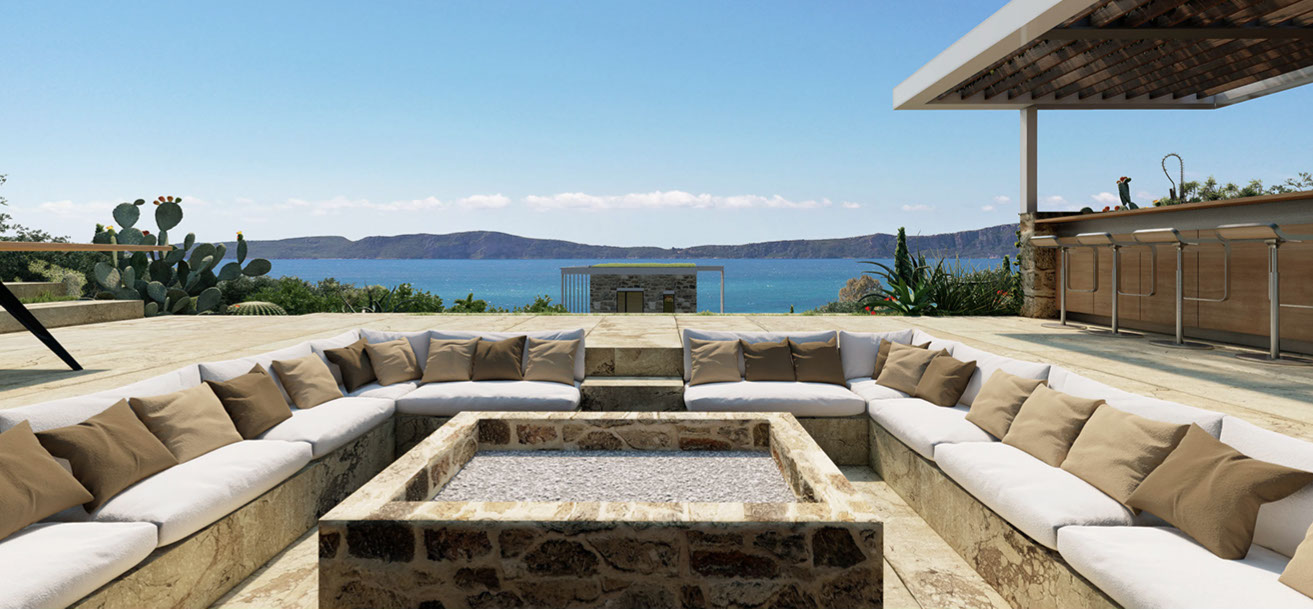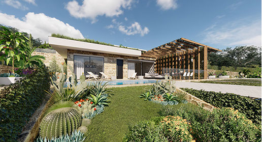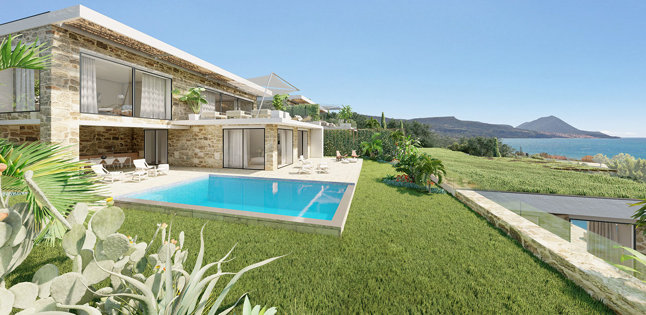 Πάνω από το ελληνικό χωριό Γιάλοβα, μόλις 190 μέτρα από την παραλία σε απόσταση αναπνοής, σας περιμένουν έξι ονειρεμένες αρχιτεκτο νικές βίλες σε ένα σύνολο 7.070 τ.μ., φωλιασμένες ανάμεσα σε βελούδινα πράσινα ελαιόδεντρα με φανταστική θέα στη θάλασσα και τον κόλπο της Πύλου.